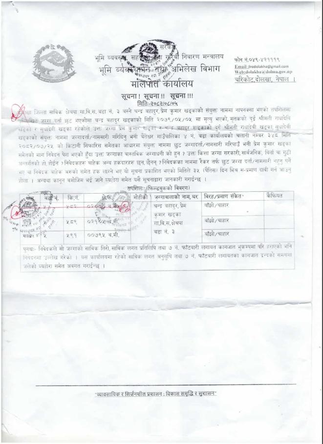 » छुट जग्गा दर्ता सम्बन्धी ३५ दिने सार्वजनिक सूचना ।