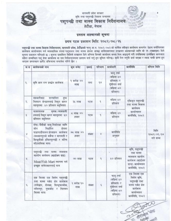 प्रथम पटक प्रकाशन मितिः २०८२।०८।२६ पशुपन्छी तथा मत्स्य विकास निर्देशनालय, हेटौडा ।