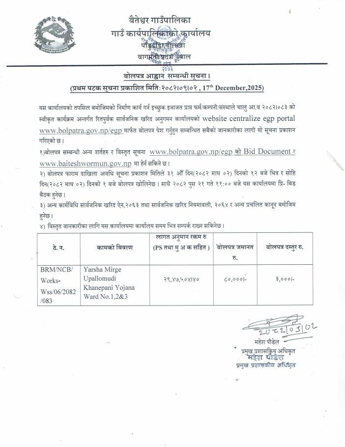 Yarsha Mirge Upallomudi Khanepani Yojana Ward No.1,2&3