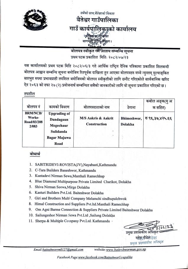 Upgrading of Dandagaun Megechaur Sulidanda Bagar Majuwa Road