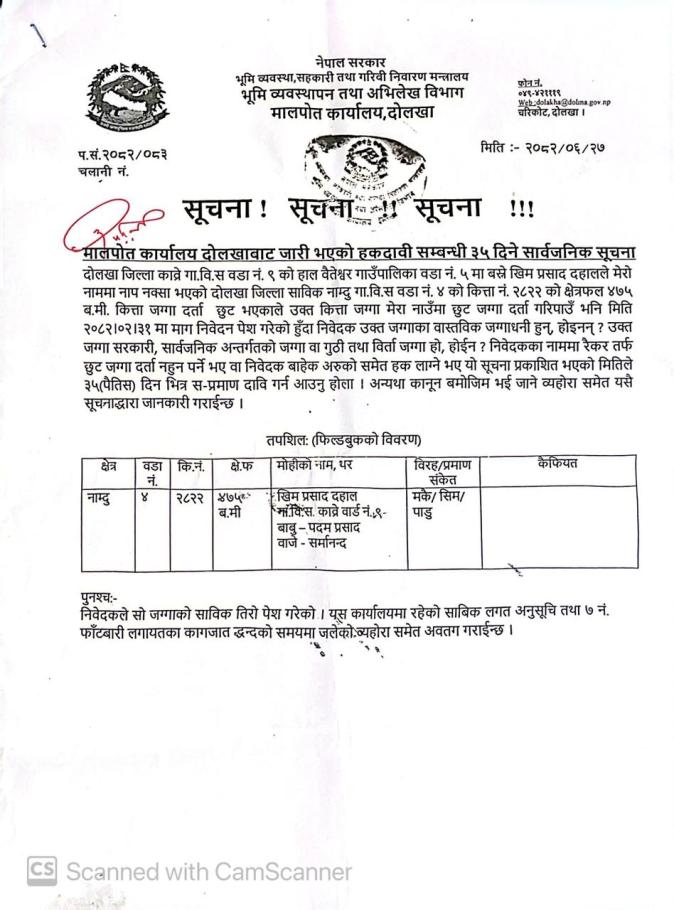 हकदाबी सम्बन्धी ३५ दिेने सार्वजनिक सूचना ।