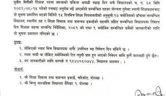 ४) चारित्रिक प्रमाणपत्रकाे प्रतिलिपि विधार्थीकाे हकमा ।