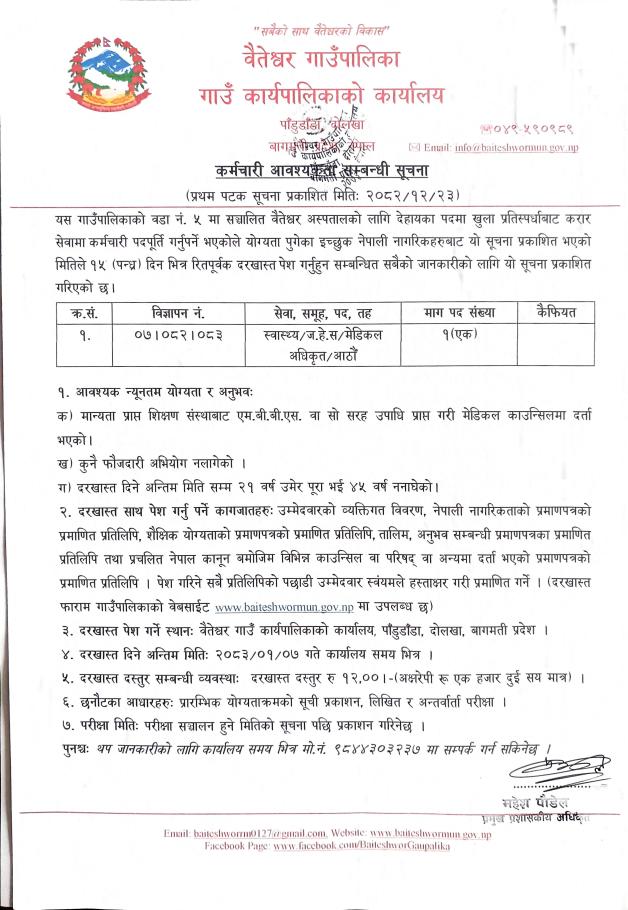 मेडिकल अधिकृत-१ प्रथम पटक सूचना प्रकाशित मितिः २०८२।१२।२३
