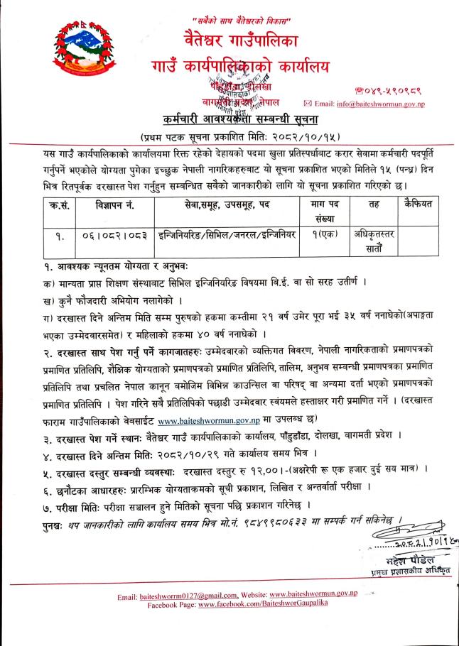 प्रथम पटक सूचना प्रकाशित मितिः २०८२।१०।१५