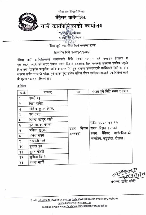 विज्ञापन नं. १०।०८१।०८२ (उद्यम विकास सहजकर्ता)