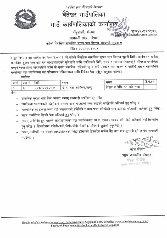 पहिलो त्रैमासिक सामाजिक सुरक्षा भत्ता वितरण सम्बन्धी सूचना ।