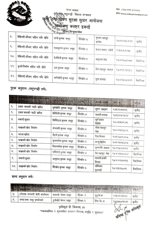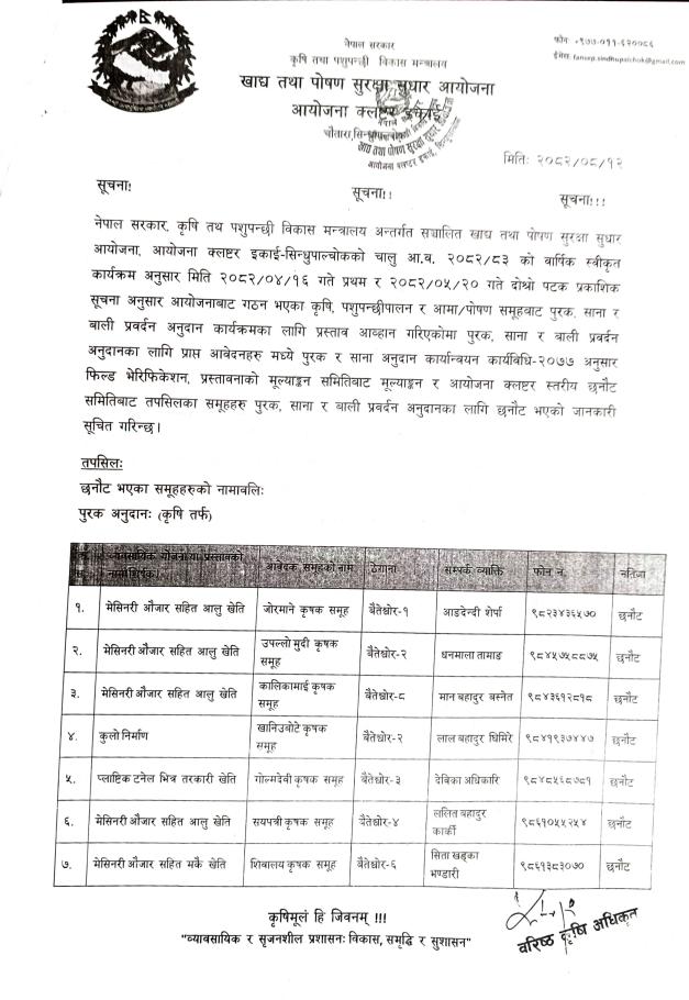 आयोजना क्लष्टर इकाई, चौतारा
