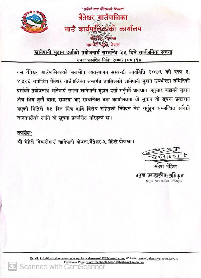 मेहेले विचारीगाउँ खानेपानी योजना, वैतेश्वर-५