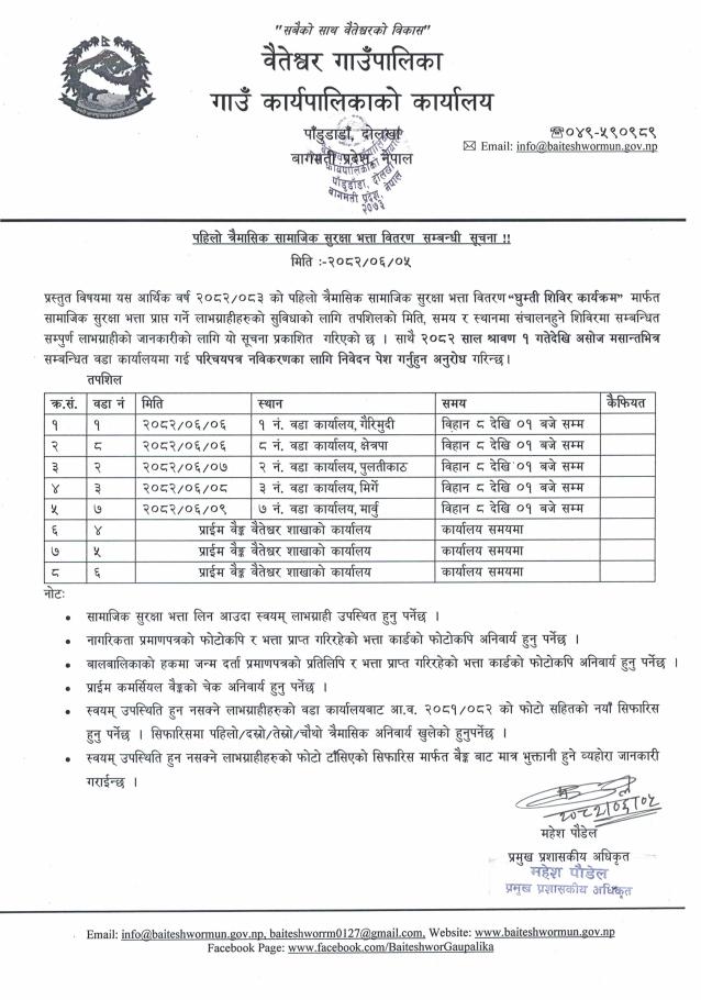 पहिलो त्रैमासिक सामाजिक सुरक्षा भत्ता वितरण सम्बन्धी सूचना ।