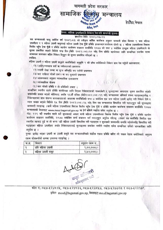 प्रकाशित मिति २०८२।०७।२६ सामाजिक विकास मन्त्रालय, हेटौडा ।